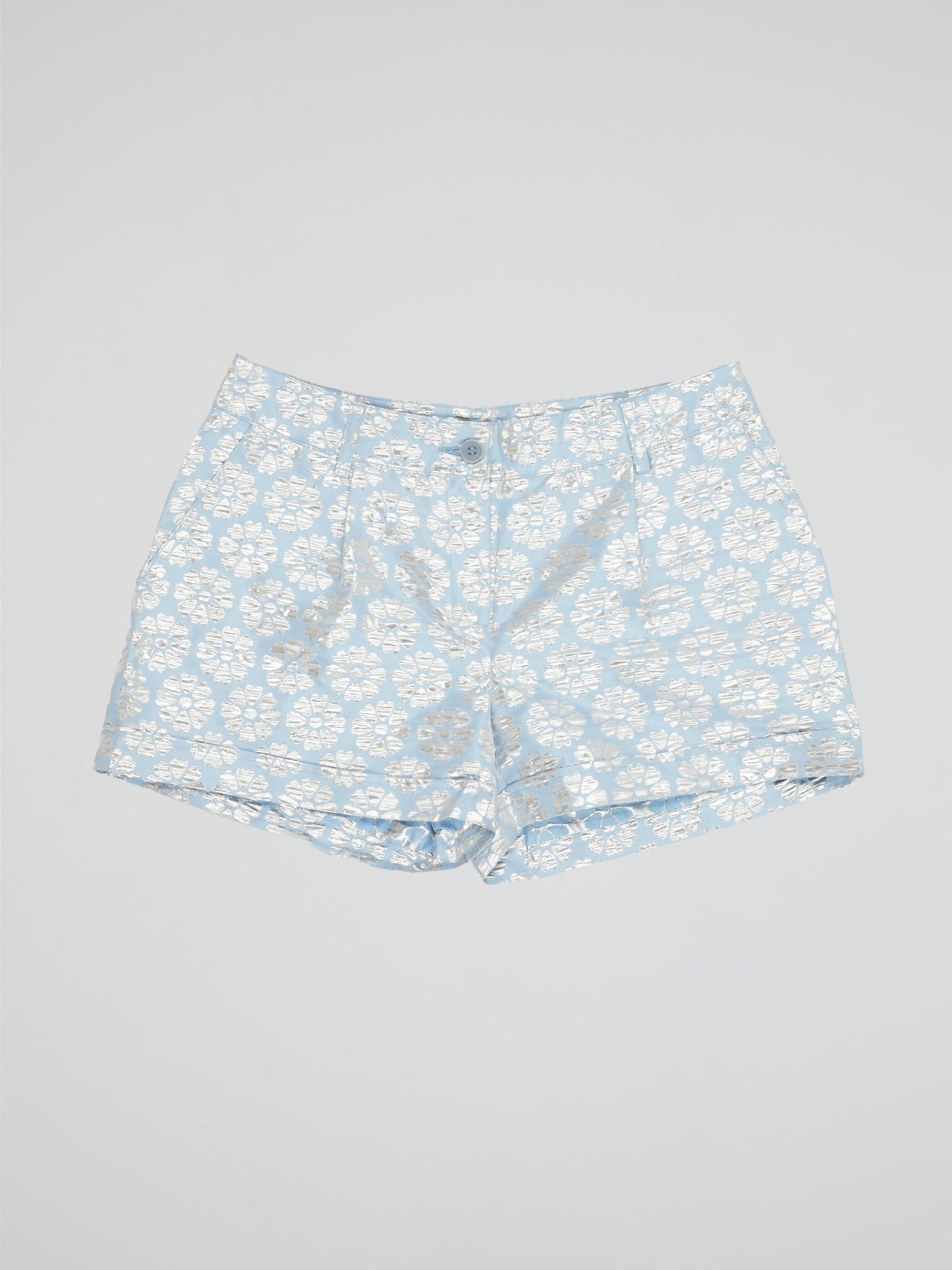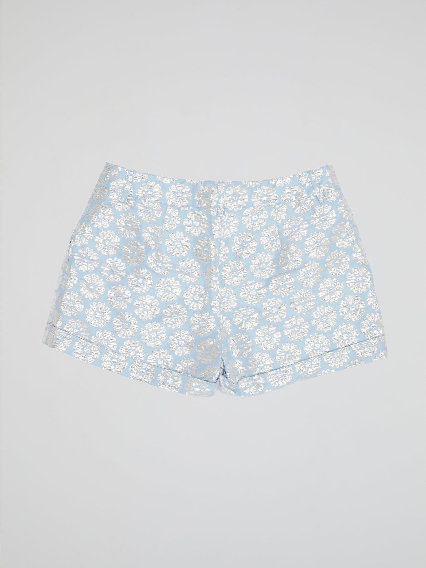 Transport yourself to a whimsical garden with these Blue Floral Print Shorts by Parosh. Made from luxurious fabric, these shorts feature a vibrant blue hue adorned with intricate floral designs for a statement-making look. Perfect for exploring the city or lounging in the sun, these shorts are a must-have addition to your wardrobe.